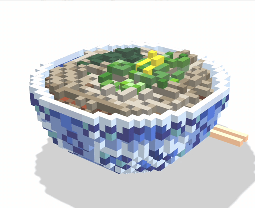 Curry, soba, ramen, etc. Dishes served in common Japanese restaurants are created in voxel.